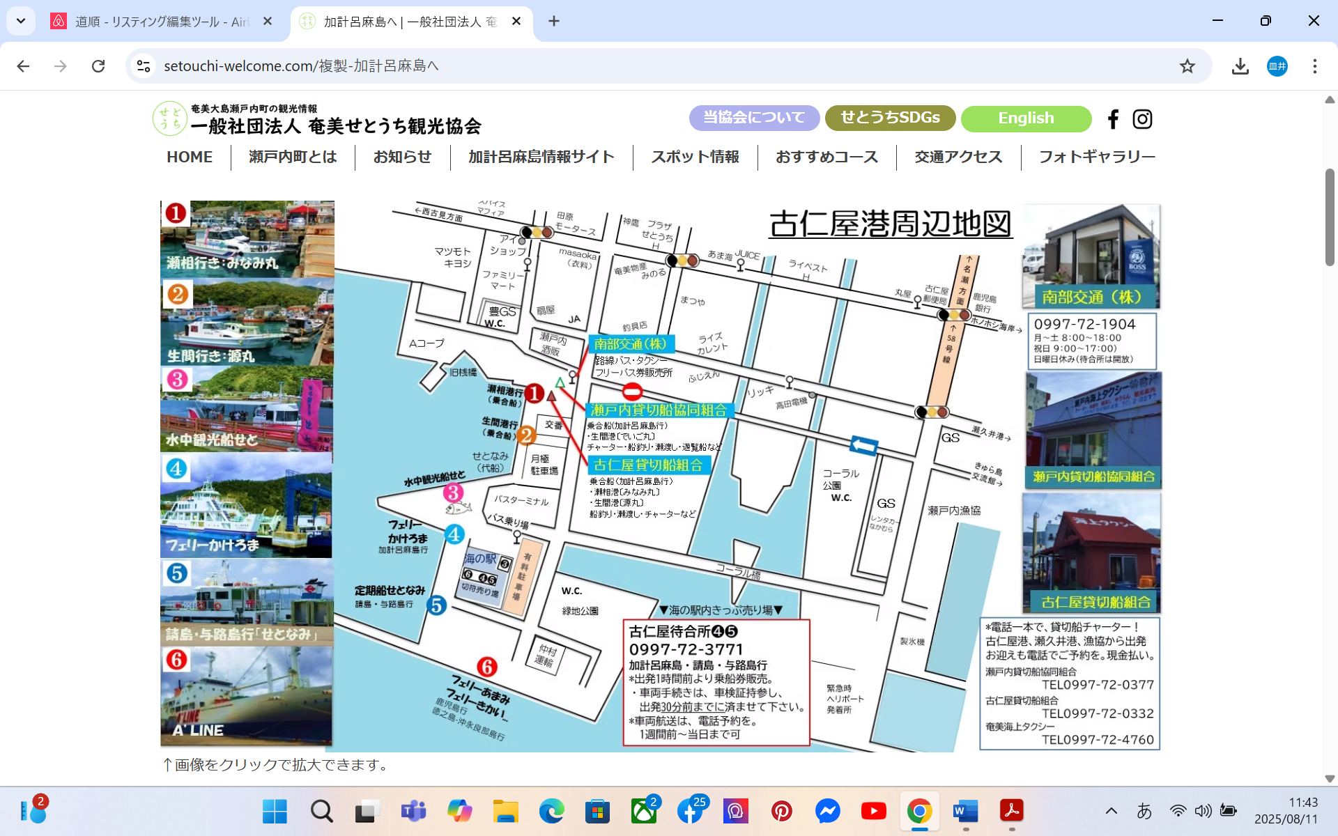※フェリーかけろまが欠航した場合は、海上タクシーをうまく利用すると便利でしょう。